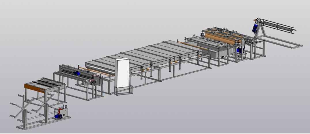 Также отличительна система подачи поперечного прутка. На линиях аналогичного производства реализована система подачи поперечного прутка сразу с соседней линии производства поперечного прутка, недостатком которой является ограничение скорости производства и подачи поперечного прутка, а также при неисправности останавливаются сразу обе линии. В нашем случае поперечный пруток производится на адаптированной под эту задачу линии производства поперечного прутка (одновременно до 6 прутков). Это позволяет независимо производить поперечный пруток в бухтах до 2500 метров каждая. Далее бухты устанавливаются в узел размотки с автоматической подачей и переключением между бухтами (одновременно устанавливается до 4-х бухт), что позволяет не ограничиваться в скорости подачи поперечного прутка.